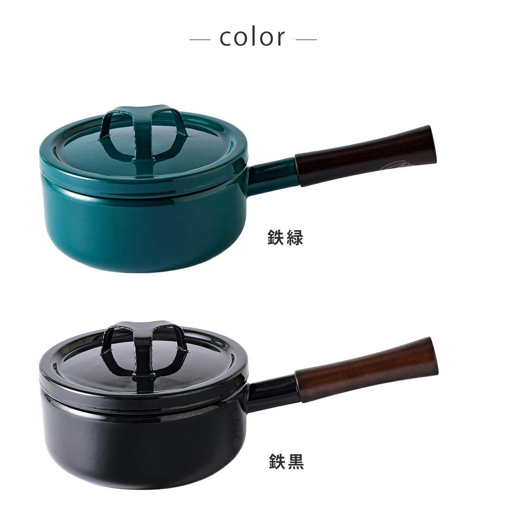 富士ホーロー 匠シリーズ 片手鍋 18cm ホーロー フタ付き ガス火 IH対応 TKM-18S 鉄緑 鉄黒【琺瑯 片手鍋 蓋付き ホーロー鍋 直火 IH 鉄色 ほうろう 調理器具 離乳食】 鉄緑