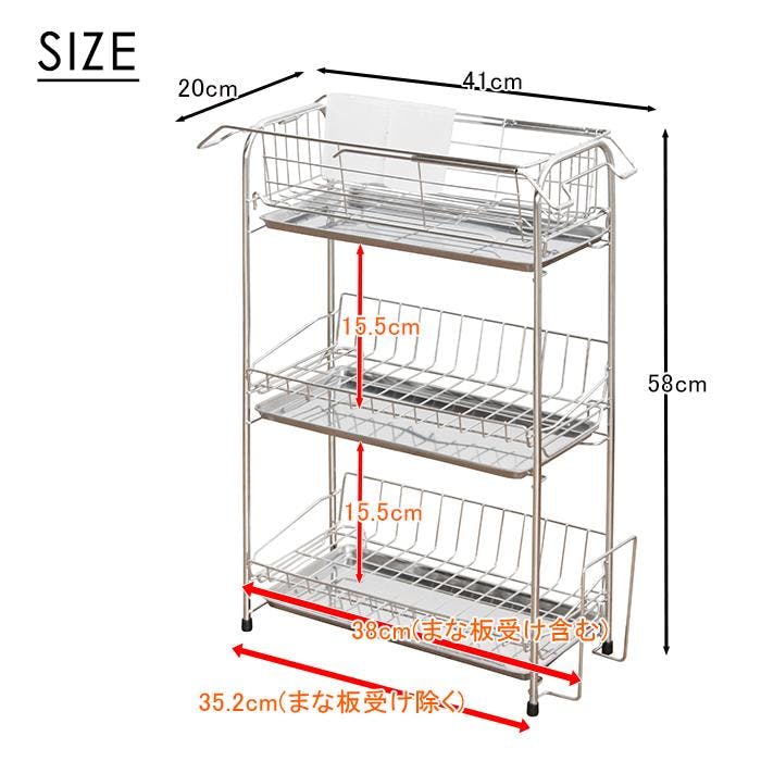 ■[全体]幅20×奥行41×高さ58cm ■[各バスケット]幅20×奥行40×高さ10cm