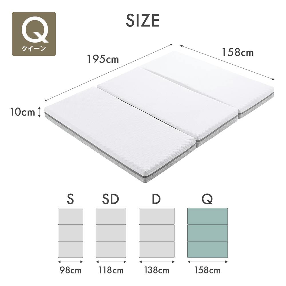エコラテ エリート 10cm 三つ折りマットレス クイーン 158x195x10cm 硬め 3つ折り 折りたたみ 150N ベッド 布団 敷き布団 体圧分散 快眠 安眠 寝具 床置き 収納 ecolatte elite