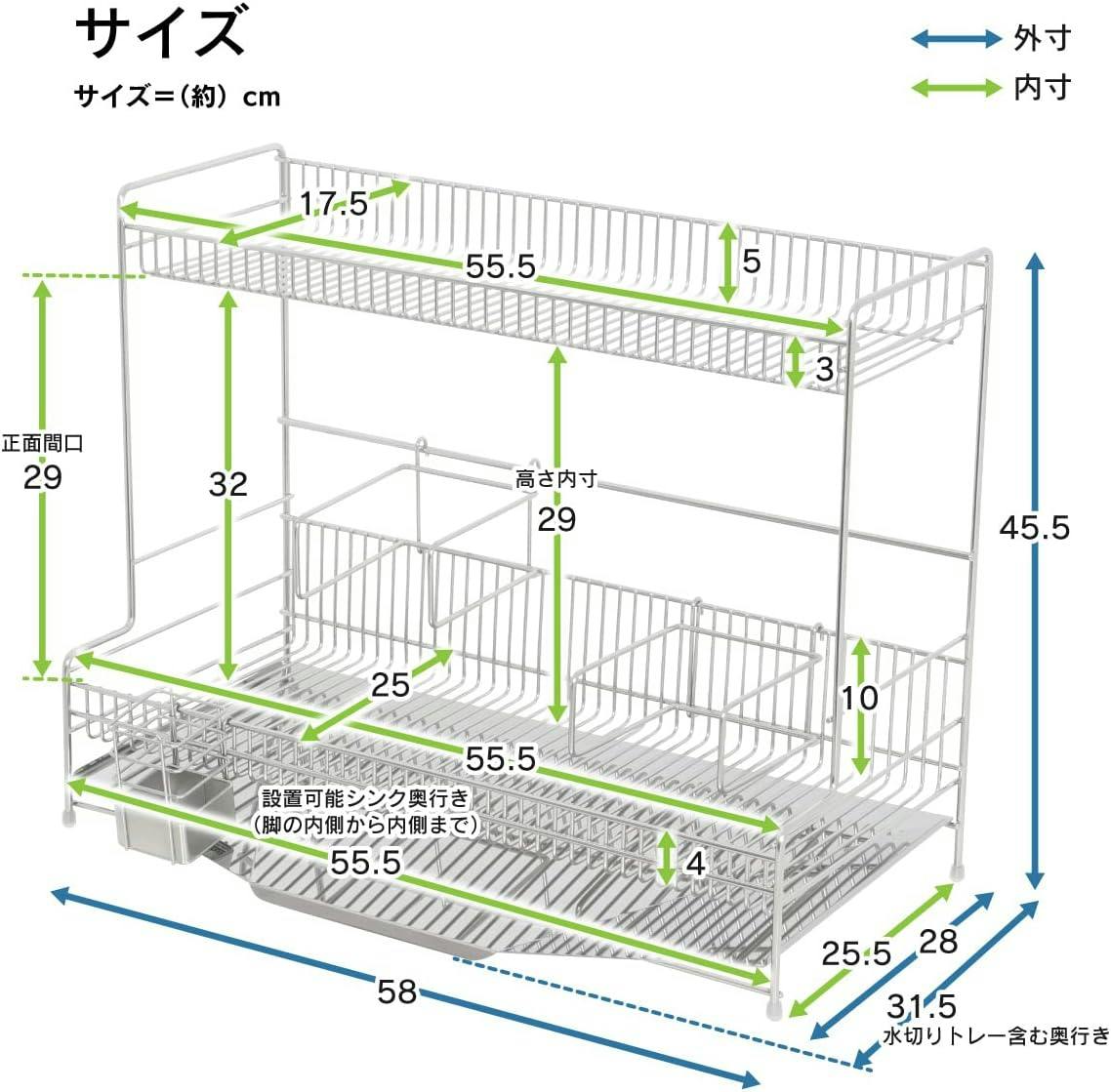 上段/約 幅55.5×奥行17.5cm(カゴ高/前方約3cm、後方約5cm)・下段/約 幅55.5×奥行25cm(カゴ高/前方約4cm、後方約10cm)