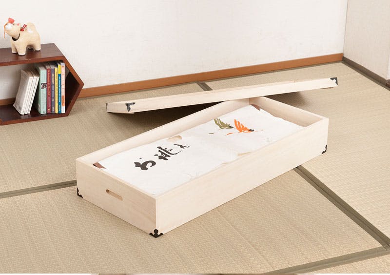 着物や浴衣の収納に定番の桐衣装箱。洋室などのフローリングにも合うデザインで和室だけでなく幅広いシーンにはまります。桐材は内部を一定の湿度に保とうとする働きがあるので大事な着物や洋服などを湿気から守る桐箱にしまうのがベスト。クローゼット上などコンパクトな1段タイプからラインナップし、着物や浴衣、洋服など長期保管に最適です。別売りの衣装盆で買い足し積み重ねができるので増える着物と洋服をしっかり収納。