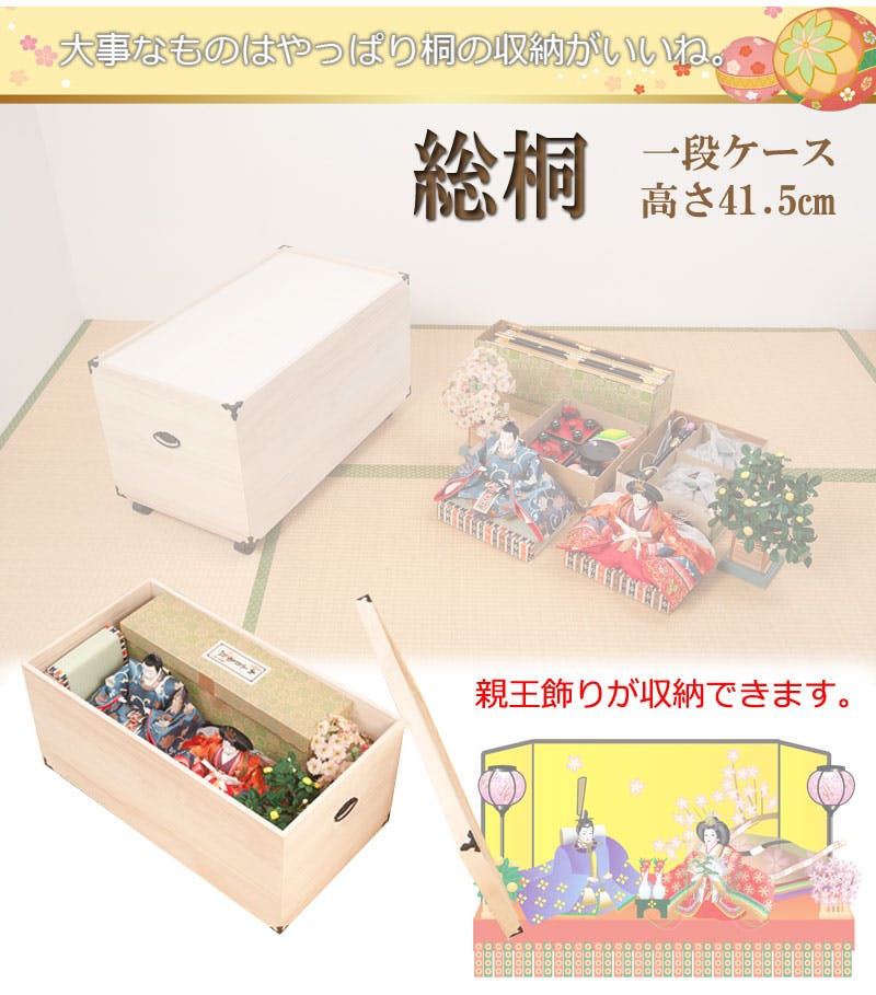 総桐雛人形収納ケース1段 高さ41.5cmタイプ 押入れクローゼットにも収納可能な奥行77cm 雛人形 五月人形 桐 雛人形収納ケース 押入れ 総桐 ひな人形 総桐衣装箱 総桐桐の衣装ケース 衣裳ケース 桐箱 キャスター付 桐たんす