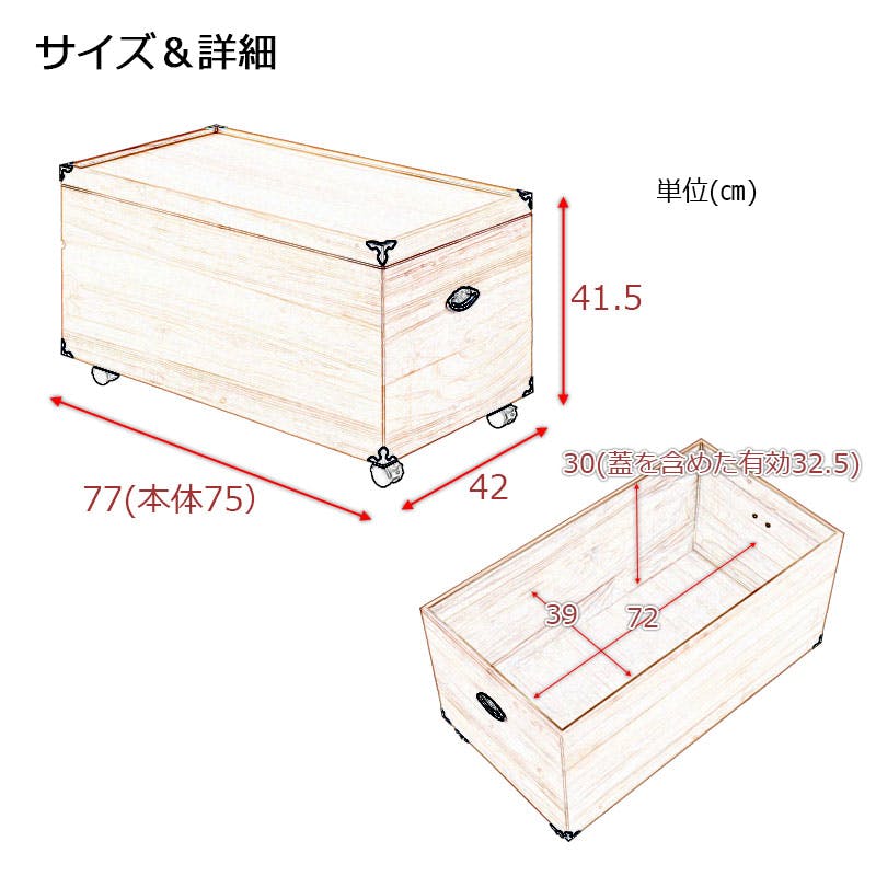 本体:(約)幅42×奥行77(取っ手含む)×高さ41.5(キャスター含む)cm