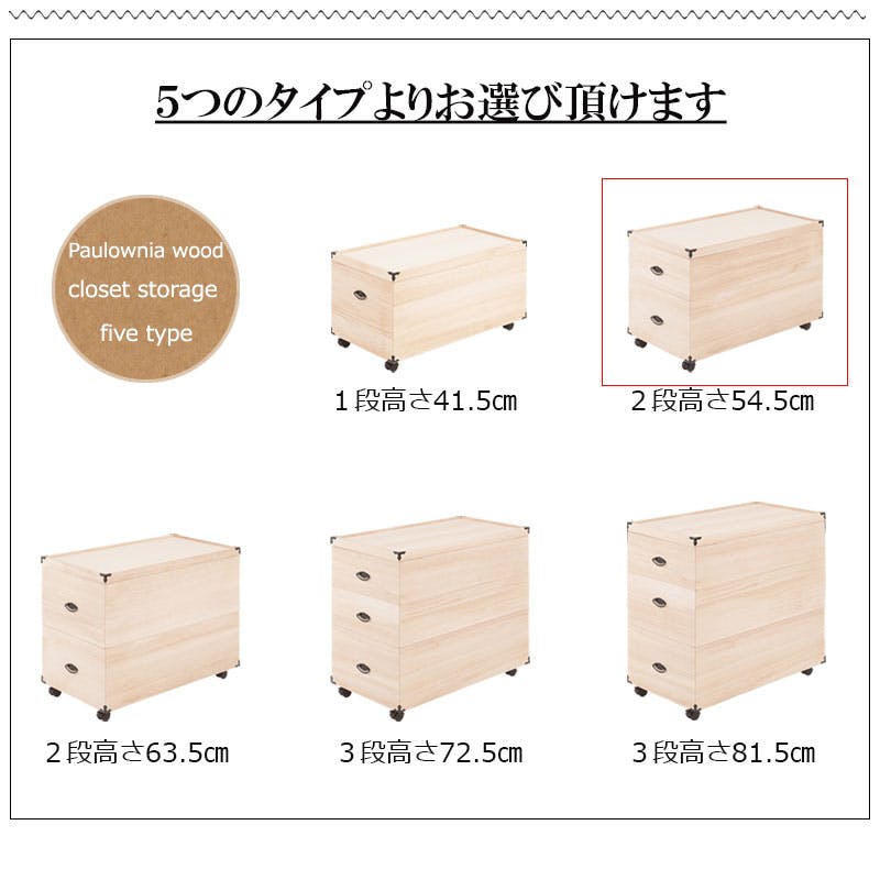 総桐押入れ収納ケース 2段 高さ54.5 天然木 桐材 完成品 タンス 木製 整理たんす 衣類収納 写真アルバム収納 クローゼット 和モダン おしゃれ ホワイト 収納 保管 洋服タンス 箪笥 スタッキング 買い足し 押し入れ キャスター付き