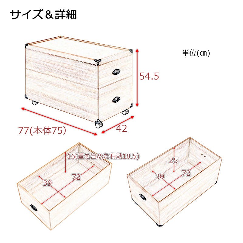 本体:(約)幅42×奥行77(取っ手含む)×高さ54.5(キャスター含む)cm