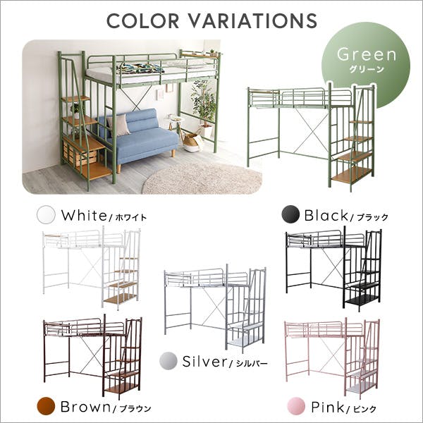 ロフトベッド 階段付き 北欧インテリア 【selva-セルヴァ-】/カラー:グリーン/ 組立 #ou-hoht70-95--ge 【4535306204297】※フレームのみ(マットレス、布団、枕等は付属しません)【送料込み】