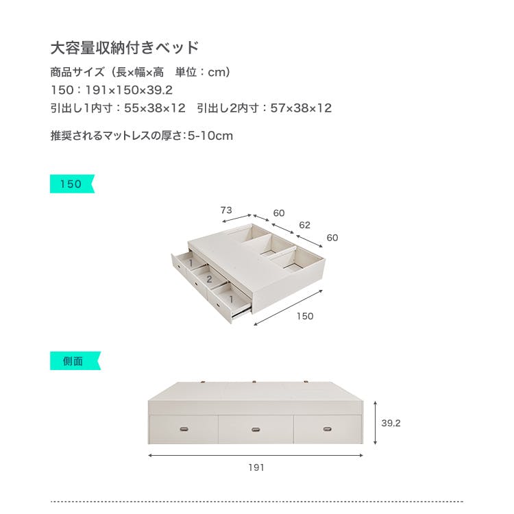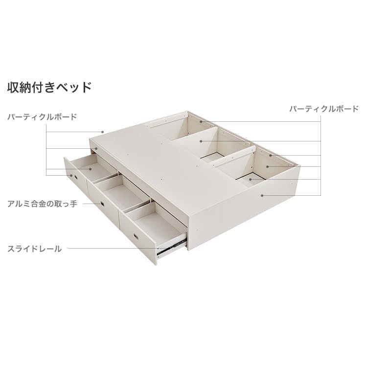 ホワイト 大容量収納付きベッド 150cm (ダブル)/カラー:ホワイト/ 組立 #ou-sh-li-00918--wh 【4535306232610】※フレームのみ(マットレス、布団、枕等は付属しません)【送料込み】