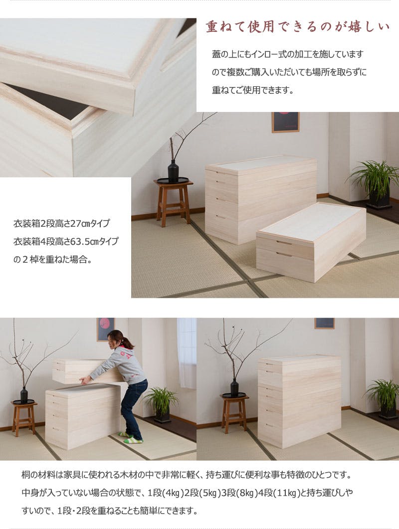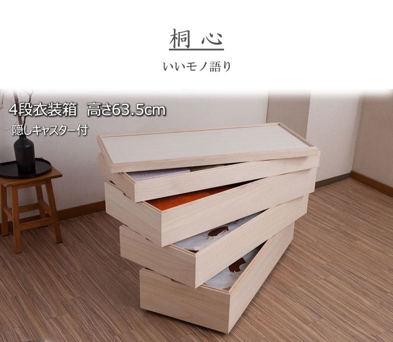 【桐心】きごころシリーズ 隠しキャスター付きスタッキング式桐衣装箱4段 高級桐ケース桐衣装箱 桐の衣装ケース チェスト 押入れ クローゼット 和ダンス 和タンス 和箪笥 着物 日本製 引き出し 着物収納 桐たんす 収納ケース 押し入れ 着物入れ 整理タンス 衣装タンス