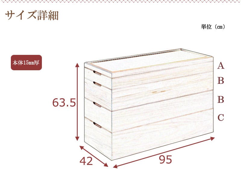 本体:天然木(桐材)、底板・天板:天然木桐化粧板、盆裏内面:竹炭シート内蔵不織布
