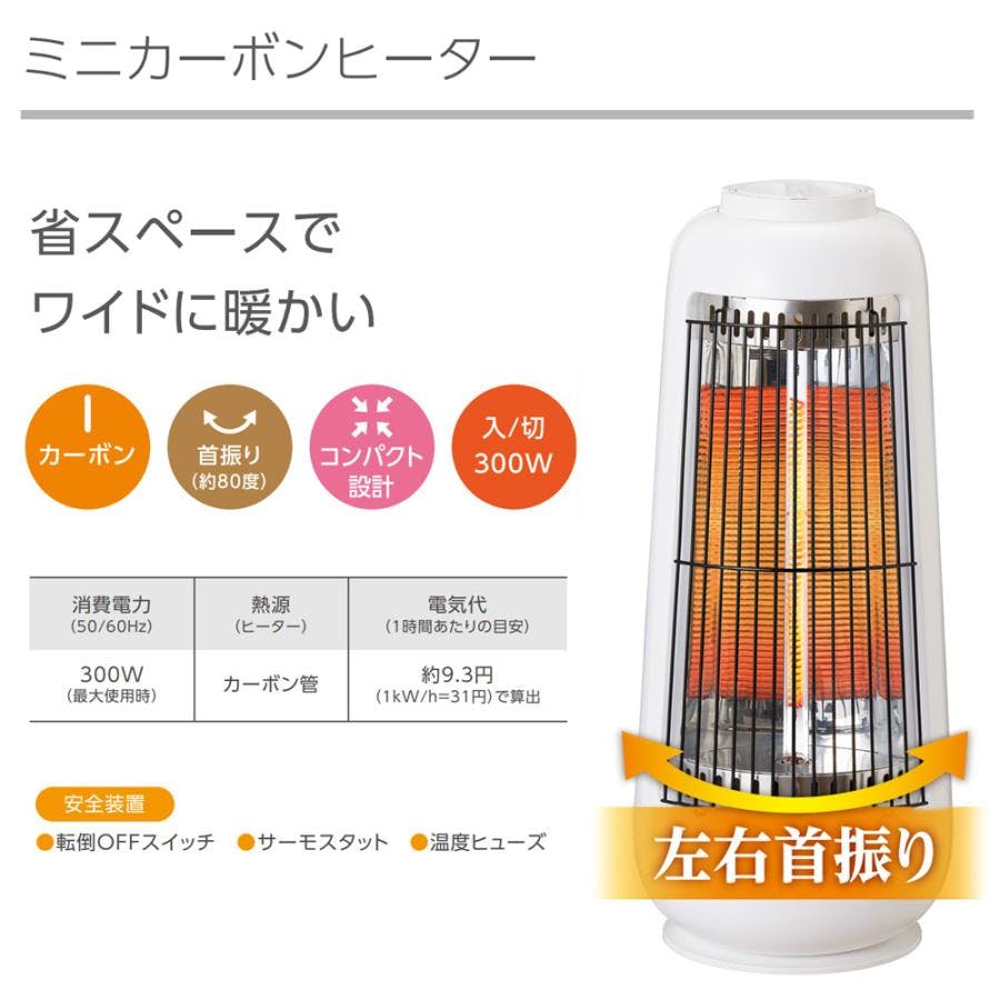 ミニカーボンヒーター C:NET シィーネット BDTM300WH ホワイト 首振り 速暖 ランタンタイプ Brissa