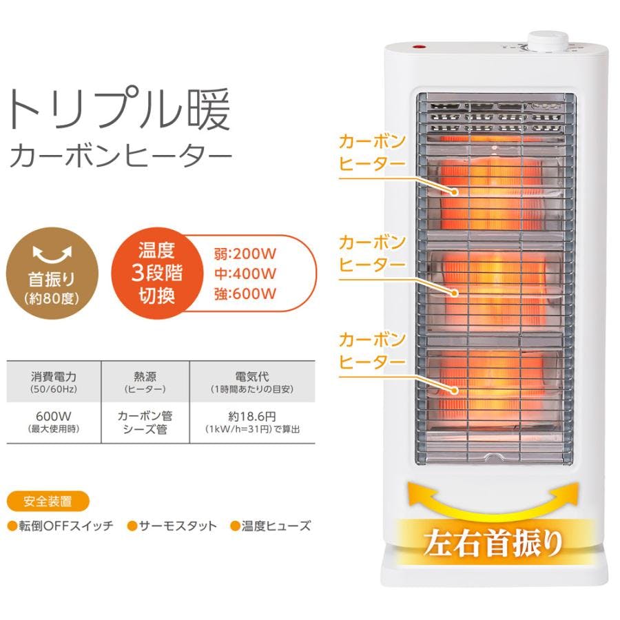 トリプル暖ストーブ Brissa 速暖 C:NET シィーネット BDTM602WH ホワイト カーボンヒーター 自動首振り