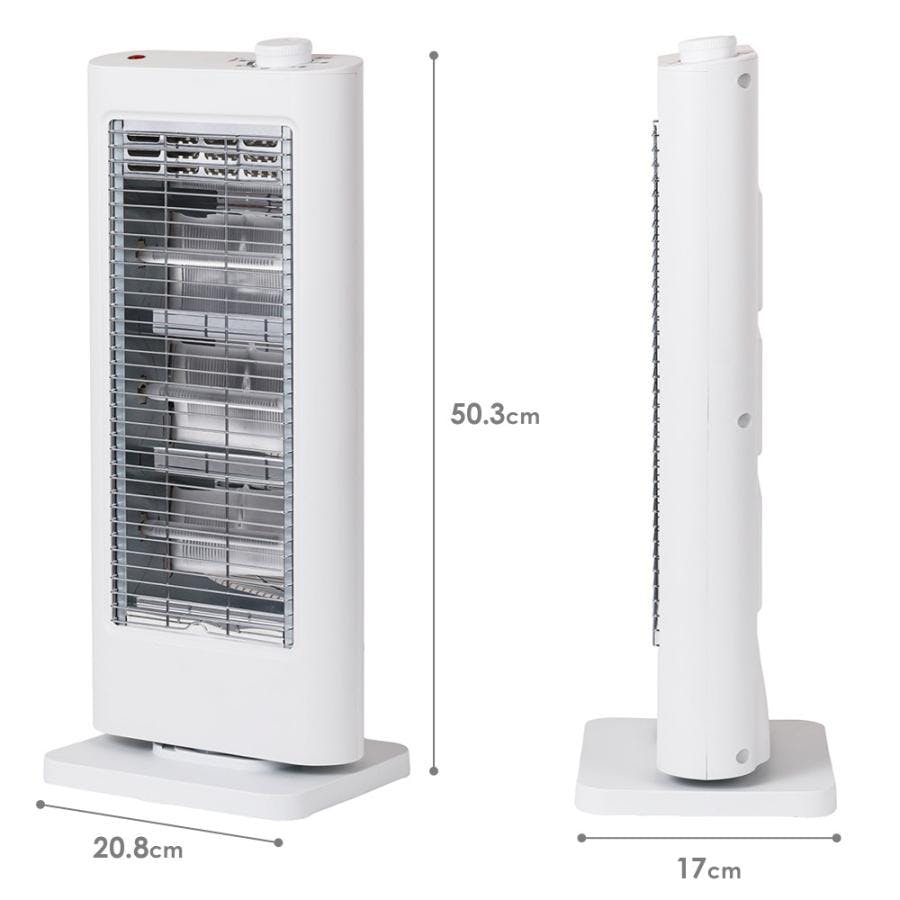 ■電源 AC100V 50/60Hz■消費電力 弱:200W / 強:400W / 強:600W■商品サイズ 約 W208×D170×H503mm■商品重量 約1.6㎏■安全装置 転倒OFFスイッチ、サーモスタット、温度ヒューズ■電源コード長 約1.6m