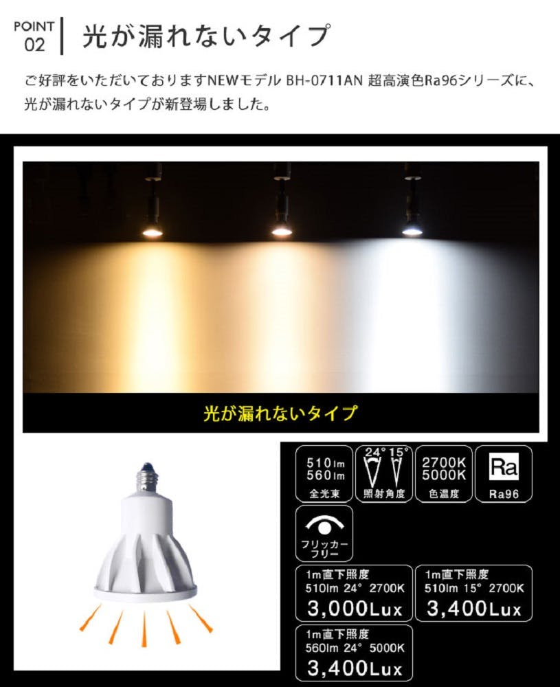 • 高演色クラス4 演色AAA LED電球 E11 60形相当 高演色Ra96 フリッカーフリー 昼白色5000K BH-0711A-BK-50-Ra96