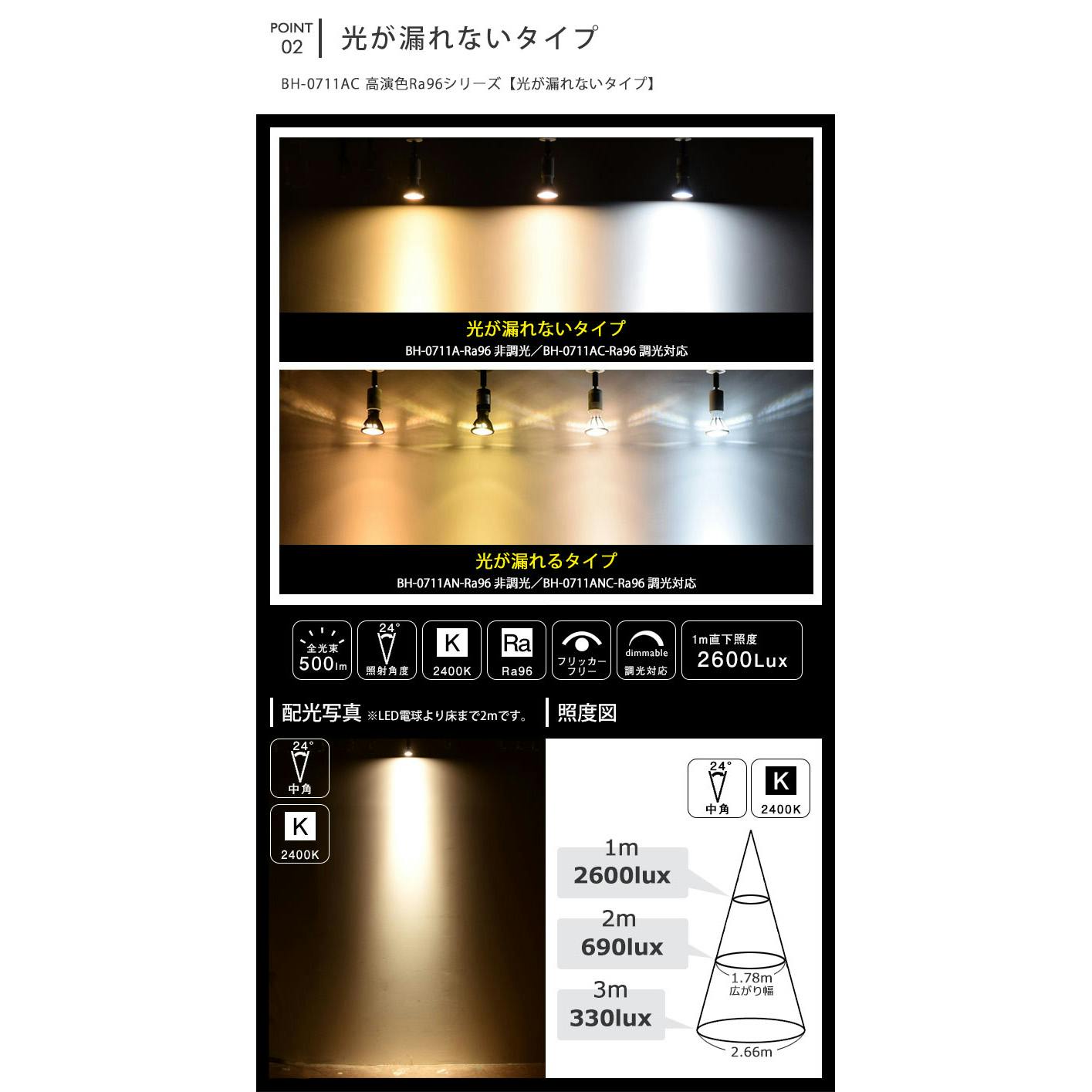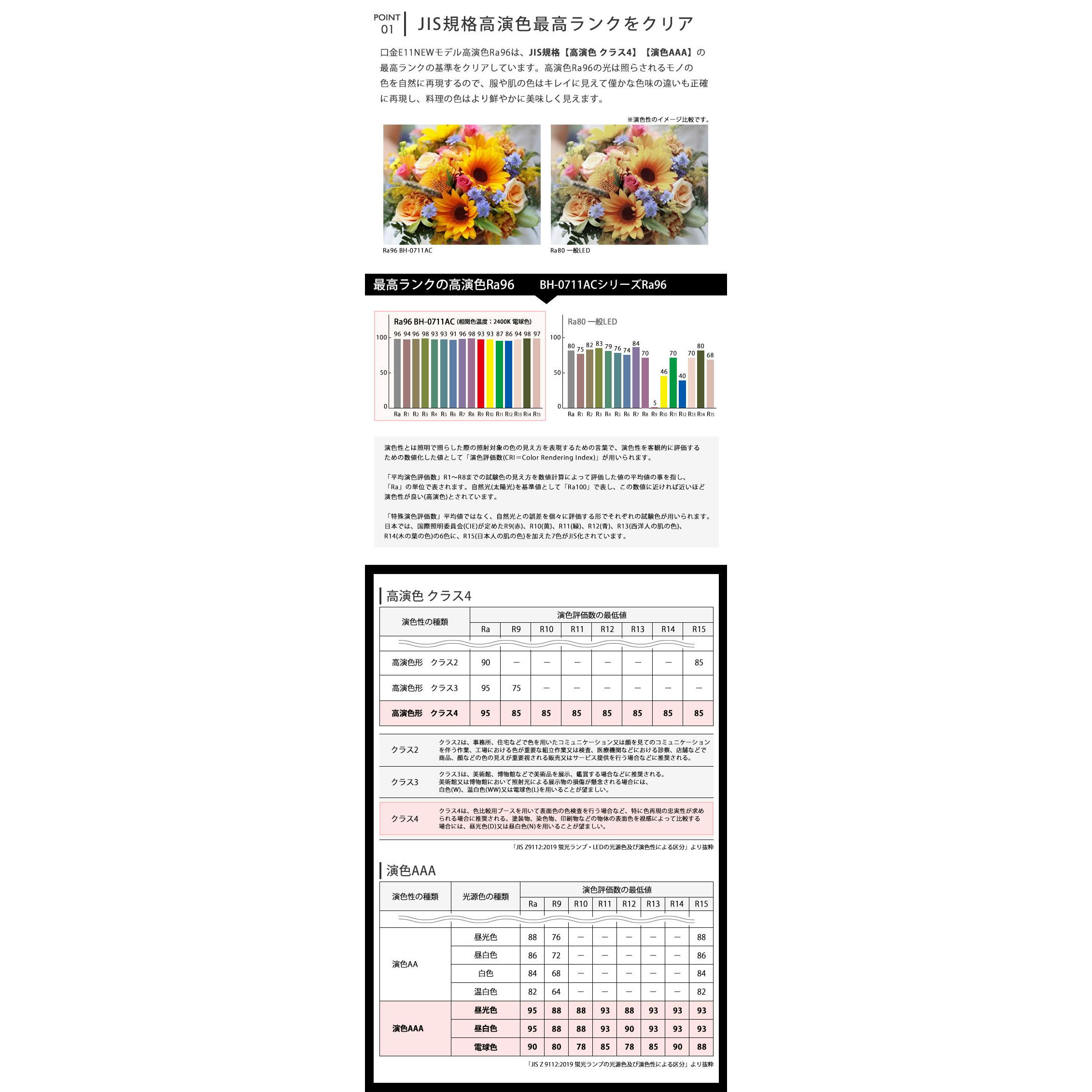 高演色クラス4 演色AAA LED電球 E11 60形相当 高演色Ra96 フリッカーフリー 電球色2400K BH-0711AC-WH-24-Ra96