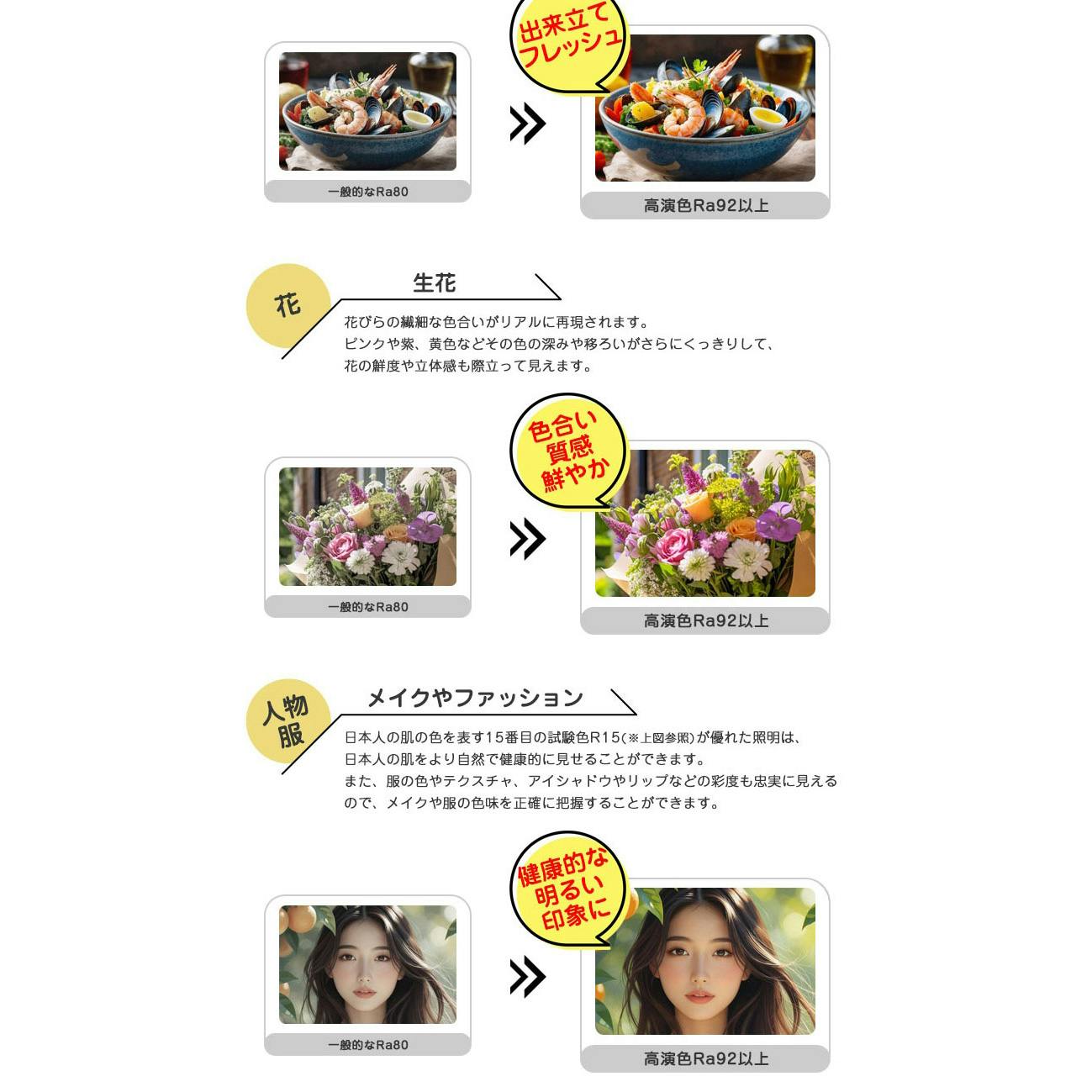 ■フリッカーフリー設計なので長時間使用しても目が疲れにくく、頭痛や肩こりの軽減、ちらつきがない安定した光環境で集中力の向上、写真や動画撮影への影響軽減「ローリングシャッター現象」や縞模様の映り込みを防ぐ効果があります。※完全にフリッカーの影響を抑えたい場合は、全体の照明を統一してください。