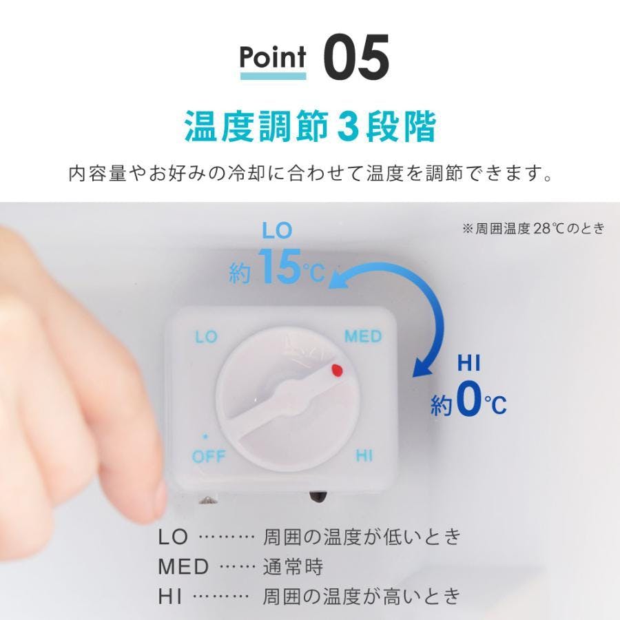 温度調節3段階/内容量やお好みの冷却に合わせて、温度を調節できます。