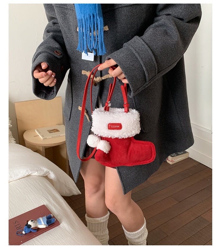 クリスマス ショルダーバッグ ハンドバッグ 靴の形 赤い かわいい モコモコ バック かばん おしゃれ 誕生日 クリスマス 雰囲気 プレゼント 萌 グッズ キャンディー入れ 小物入れ