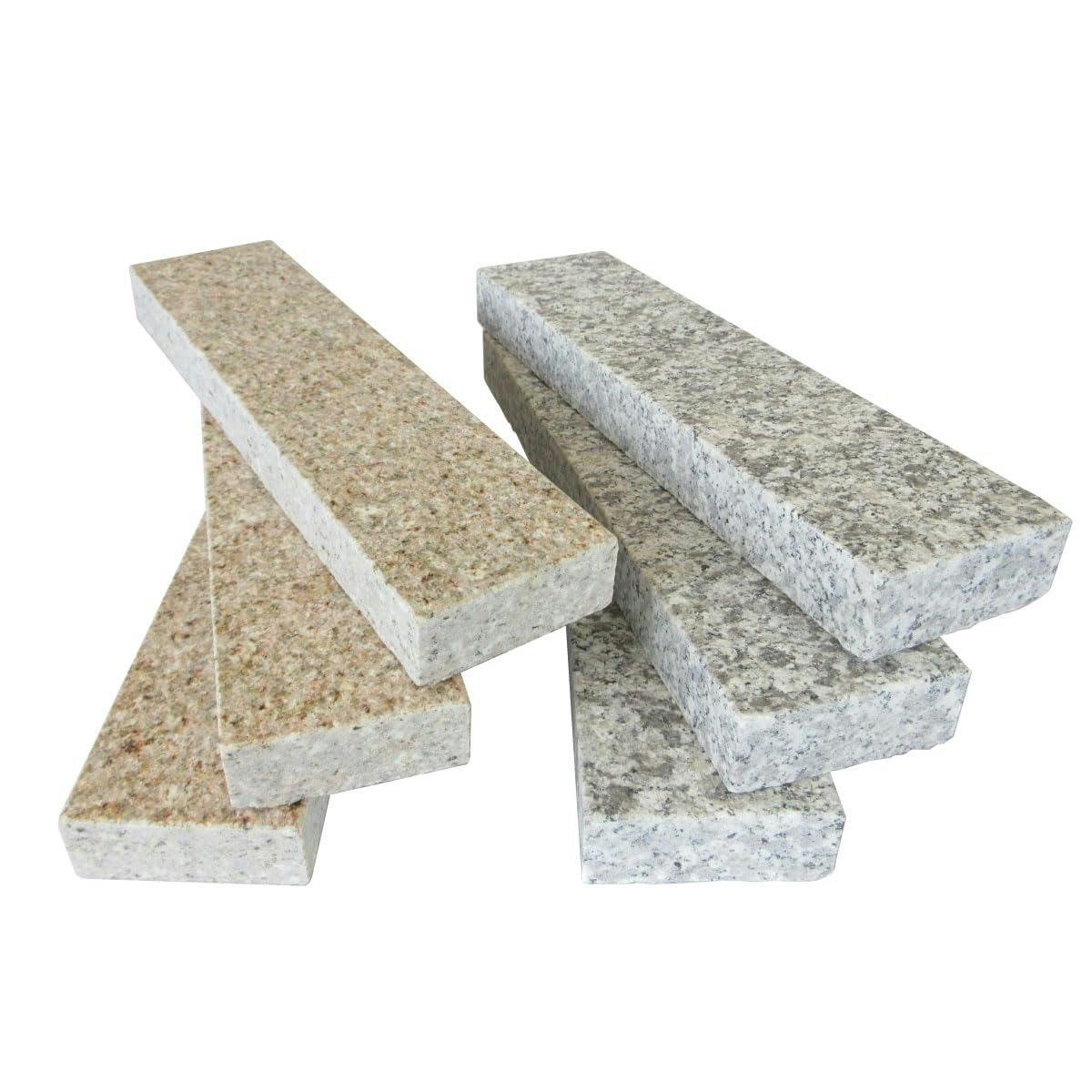 ●御影石のボーダー石6本セットで白とベージュのミックス構成です●表面はバーナー焼き加工で自然風合いを強調し側面は削り出しの仕上げです●厚み3cmで重厚感があり踏石や飛石お庭の敷石壁材など幅広く使えます●濡れると特に美しく上品な色合いがお庭に馴染みます