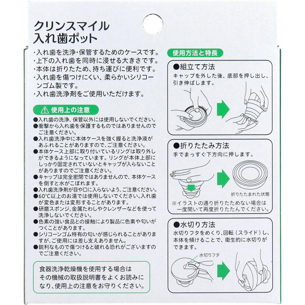 たためて運べて入れ歯ケースに見えない。入れ歯を洗浄・保管するためのケースです。●上下の入れ歯を同時に浸せる大きさです。●本体は折りたため、持ち運びに便利です。●入れ歯を傷つけにくい、柔らかいシリコーンゴム製です。●入れ歯洗浄剤をご使用いただけます。●水きりかんたん。●抗菌加工。