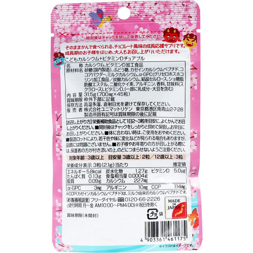 こどもカルシウム+ビタミンDチュアブル チョコレート風味 45粒入 ×1点【送料込み】 #4903361461175