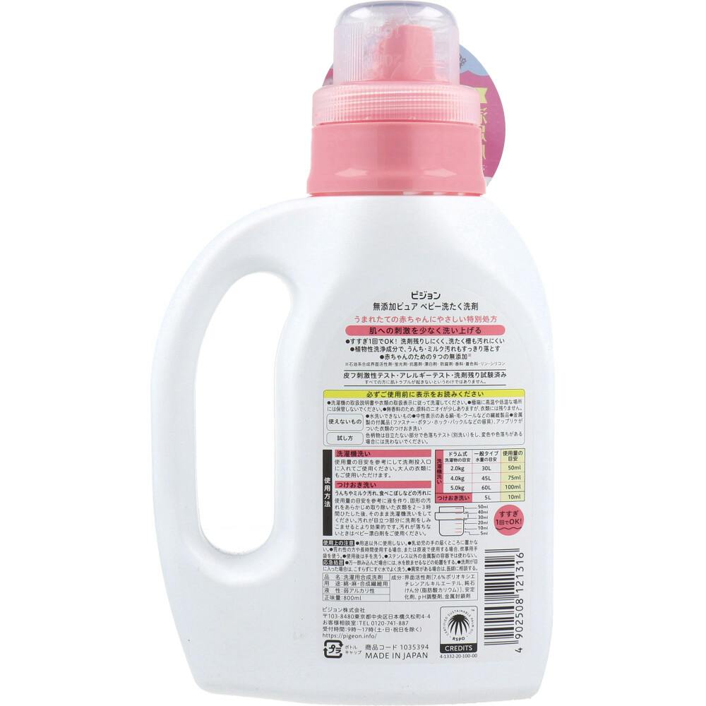 ピジョン無添加ピュア ベビー洗たく洗剤 800mL ×1点【送料込み】 #4902508121316