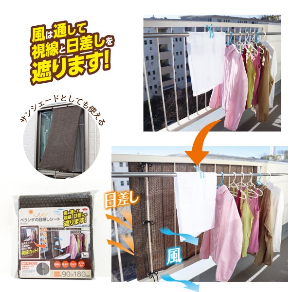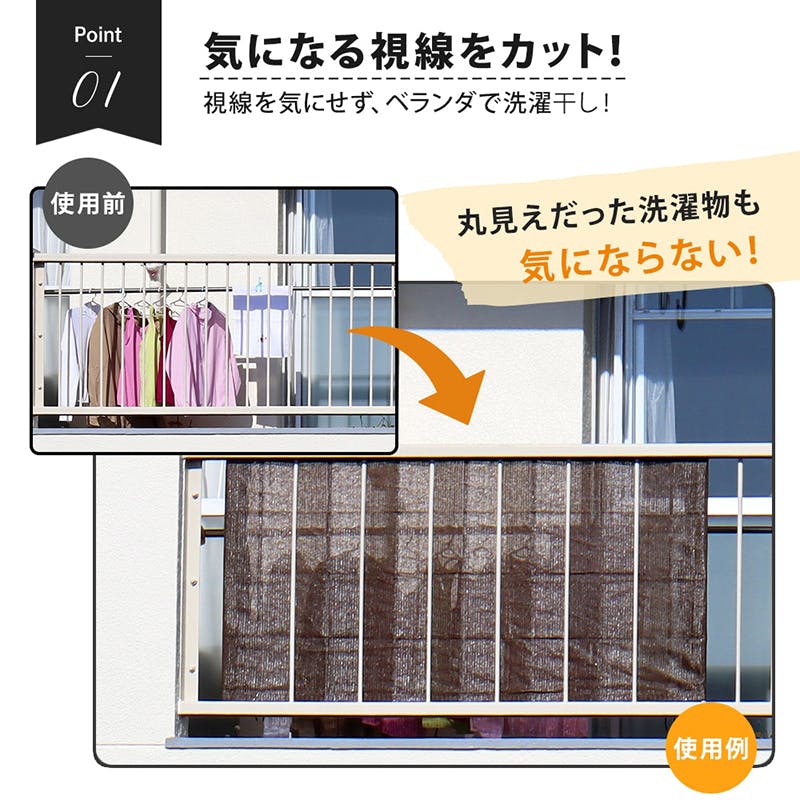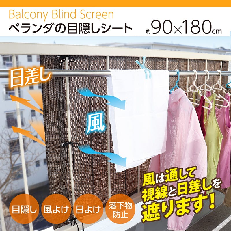 【ベランダの目隠しシート ブラウン】 ちあふる 風通して視線カット メッシュ 目隠し 日よけ 取付簡単 90×180cm JAN:4989409092556