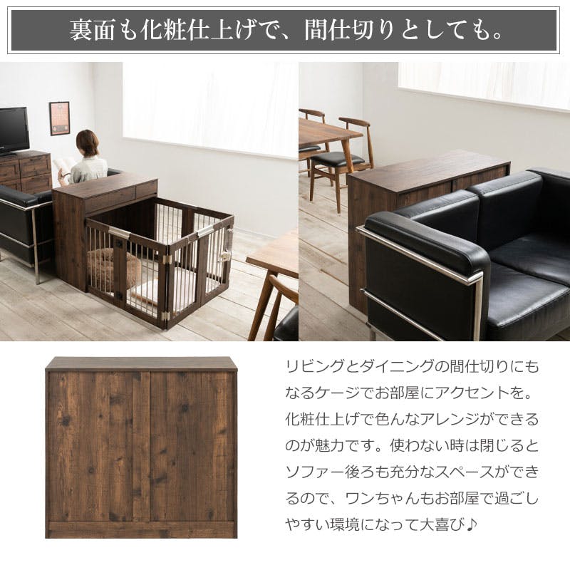 ワイドサイズが新登場!【ARIZONA】 本格収納付き折りたたみ型ケージ すむぺっと 幅90 奥行40 高さ80 ブラウン 西海岸ヴィンテージ ペットケージ ペットサークル 省スペース 小型犬 中型犬 室内サークル スライド 背面化粧 犬 ペット用品 犬用品 犬小屋 ゲージ 茶 檻