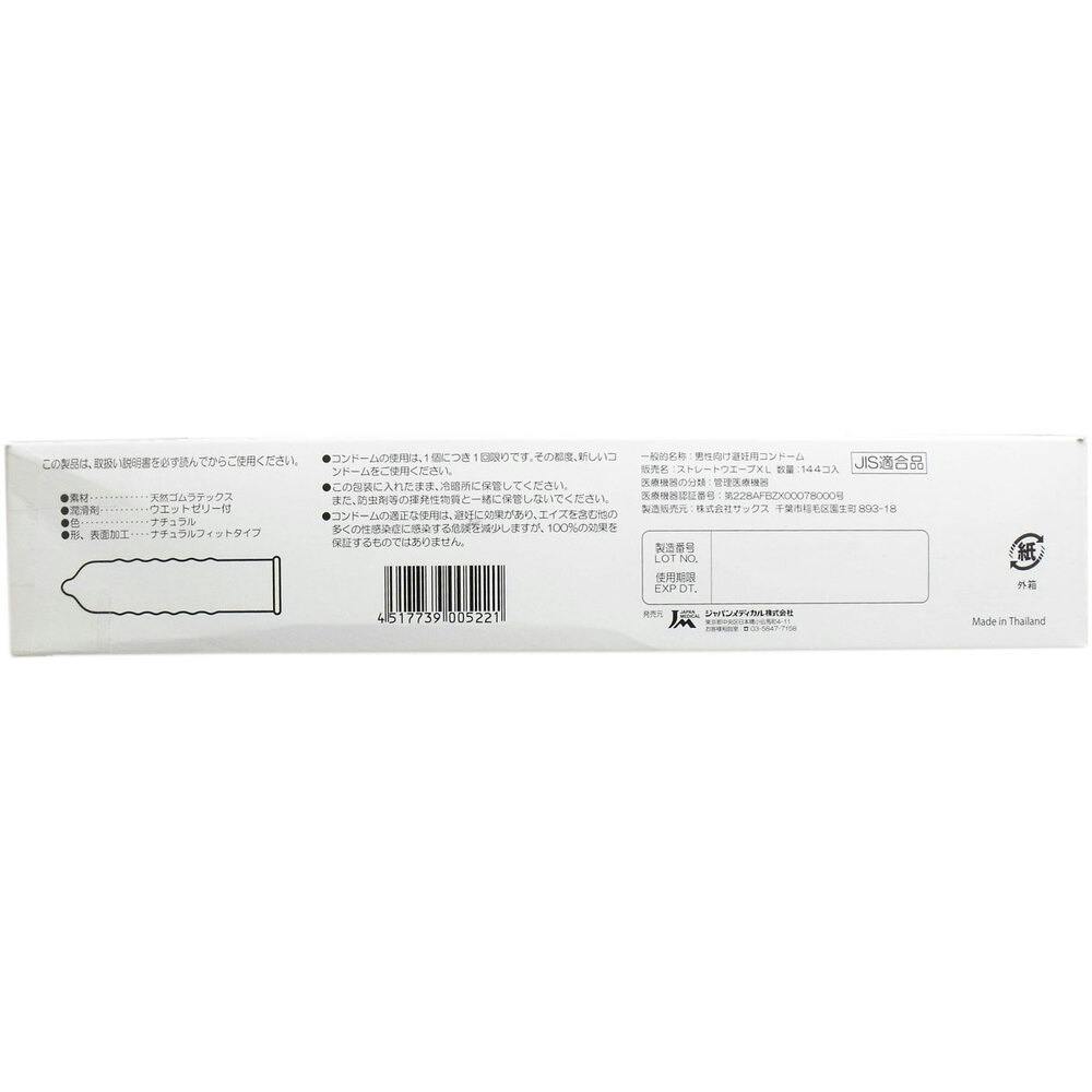 業務用XLサイズコンドーム!お得な144個入!●業務用コンドームはホテル向けにパッケージを簡素化した商品です。●JIS適合品のため、安心してお使いいただけます。★素材・・・天然ゴムラテックス★潤滑剤・・・ウエットゼリー付★色・・・ナチュラル★形・表面加工・・・ナチュラルフィットタイプ