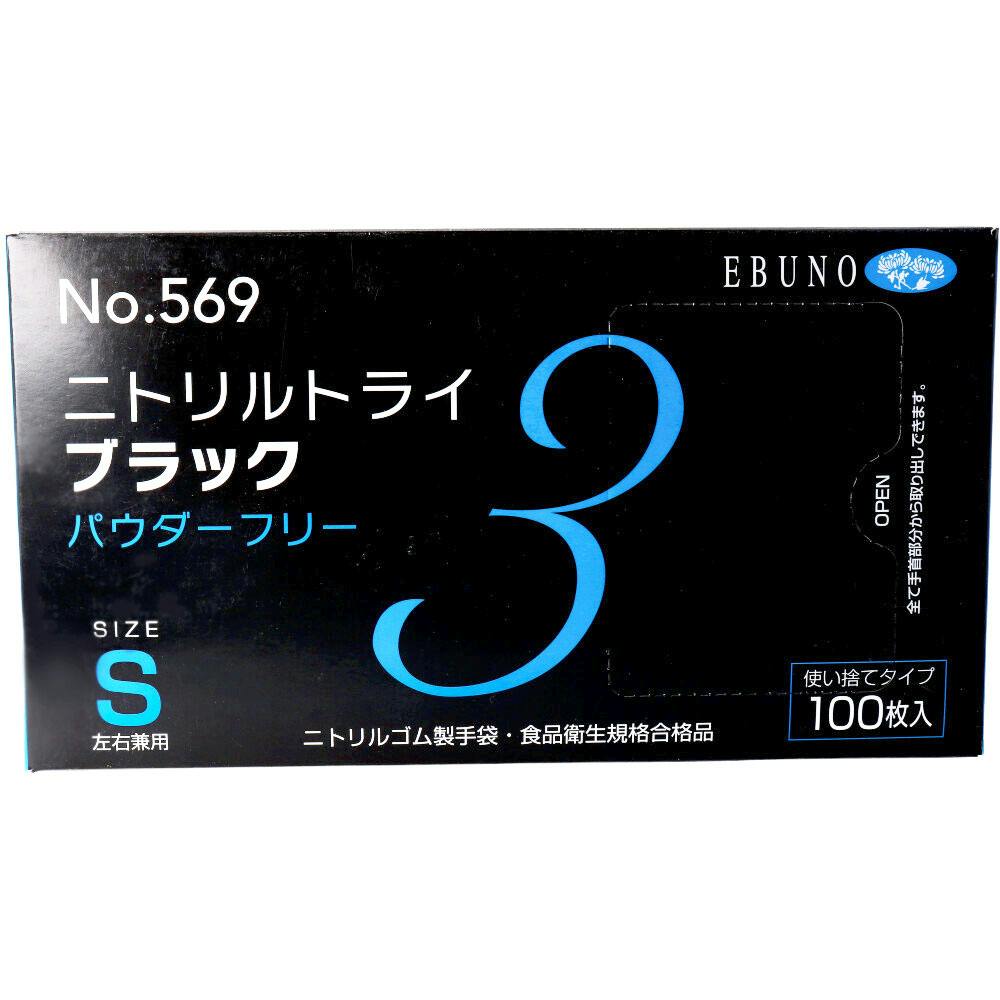 【業務用】No.569 ニトリルトライ3 ブラック パウダーフリー ニトリルゴム製 使い捨て手袋 Sサイズ 100枚入 ×1点【送料込み】 #4520951014254