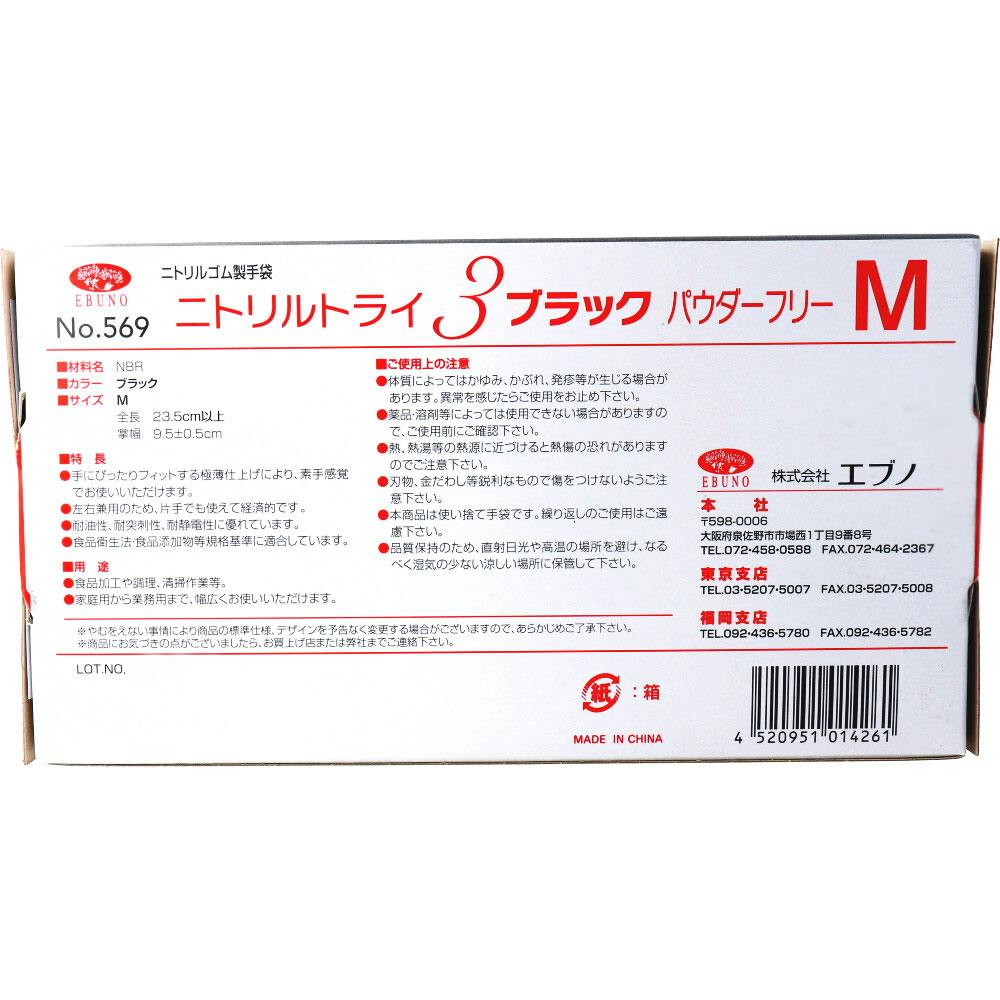 【業務用】No.569 ニトリルトライ3 ブラック パウダーフリー ニトリルゴム製 使い捨て手袋 Mサイズ 100枚入 ×1点【送料込み】 #4520951014261