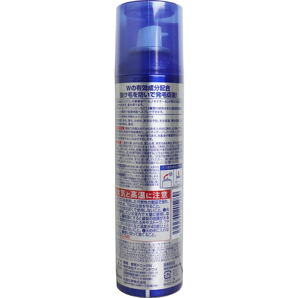 発毛促進!抜け毛を防ぐ!ジェット噴射で地肌に届く!液だれしにくい微発泡タイプ!Wの有効成分配合!●有効成分(ビタミンE誘導体・ヒノキチオール)が発毛を促進し、抜け毛を防ぎ、髪を育てます。●アロエ・センブリ・ニンジンなど12種類の植物エキス(保湿剤)配合。●ジェット噴射で直接地肌へスプレーできます。