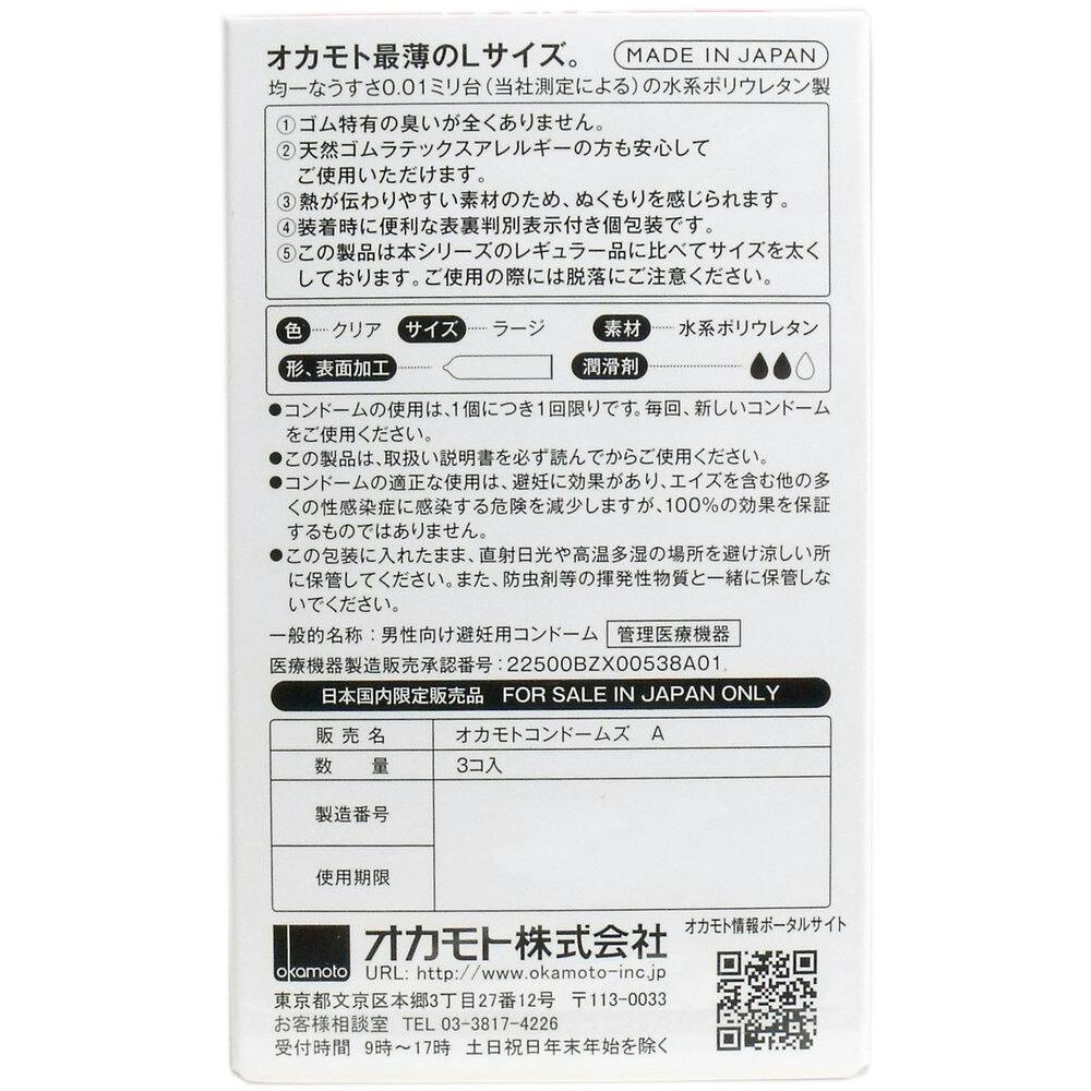 オカモトゼロワン 0.01ミリ コンドーム Lサイズ 3個入 ×1点【送料込み】 #4547691775122