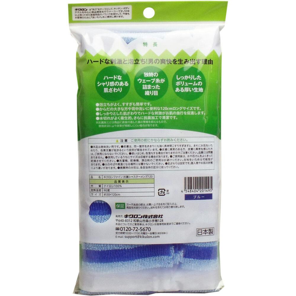 男の爽快ボディタオル 超ロング 抗菌シャスターメンズ120 超かため ブルー ×1点【送料込み】 #4548404201495