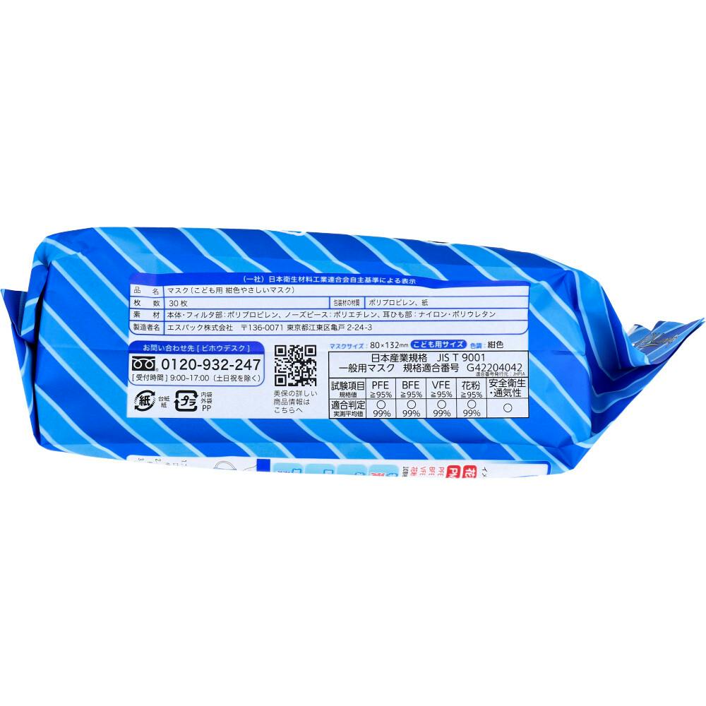 こども用 紺色やさしいマスク 個包装 小学生サイズ 30枚入 ×1点【送料込み】 #4560114779583