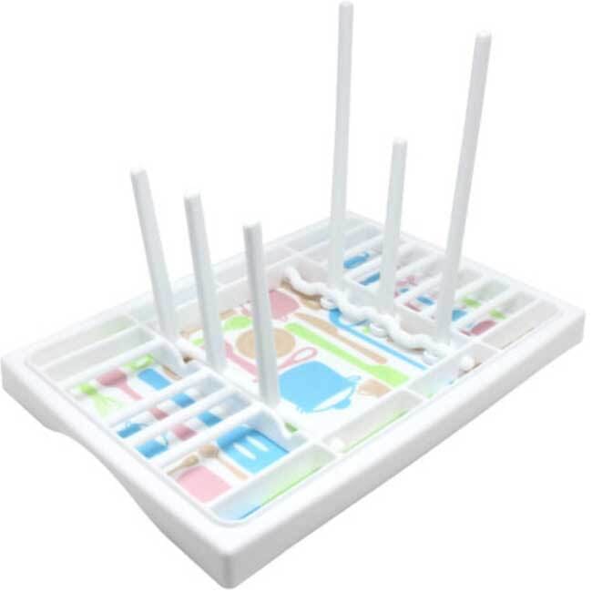 すのこを外して丸洗い!洗いやすい水切りトレー。ほ乳びん・マグ・コップ・ペットボトルなどを立てることができるしっかりサイズの水切りトレーです。スタンドを閉じれば「すのこ」になるので、マグ・コップなどをそのまま置いて水切りができます。●スタンド付きの「すのこ」はトレー本体から外せるのでお手入れも楽ちんです。●「育児中はできるだけ長く使いたい」という方にオススメです。●短いスタンドと長いスタンドを立てることでほ乳びんやパーツ類、食器類、ペットボトルなどの水切りができます。●スタンド