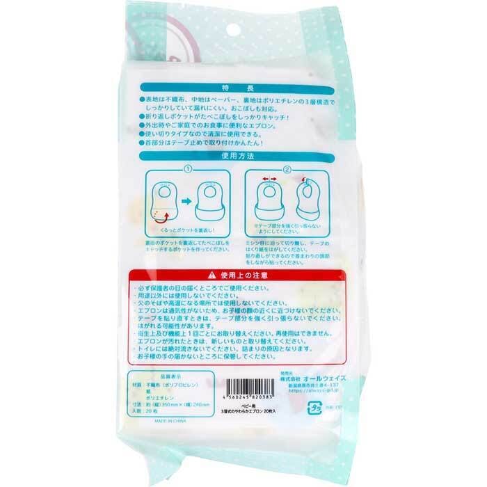 ベビー用 3層式のやわらかエプロン アニマル 使い切りタイプ 20枚入 ×1点【送料込み】 #4560245820383