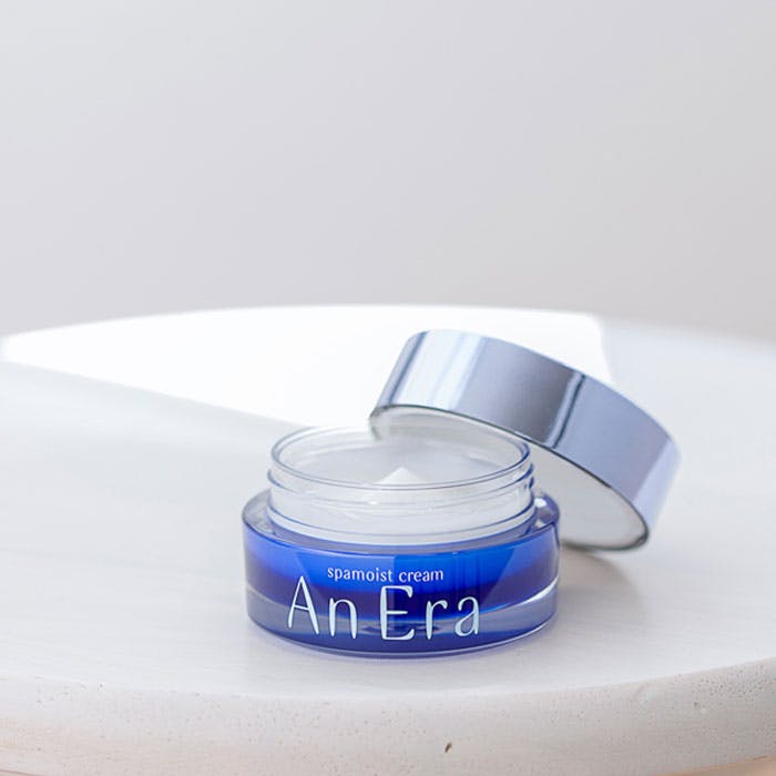 ,【化粧品】,販売名:アンエラ スパモイスト クリーム,【成分】,水、グリセリン、DPG、スクワラン、リンゴ酸ジイソステアリル、1,2-ヘキサンジオール、水添レシチン、アセチルヒアルロン酸Na、加水分解ヒアルロン酸、ザクロ果実エキス、シャクヤク根エキス、加水分解コラーゲン、ローヤルゼリーエキス、ボタンエキス、オタネニンジン根エキス、マヨラナ葉エキス、ワイルドタイムエキス、ローズマリー葉油、ダイズ油、ホホバ種子油、トリエチルヘキサノイン、キサンタンガム、カルボマー、BG、水酸化