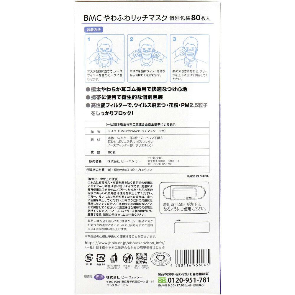 BMC やわふわリッチマスク 1日使いきりタイプ 個別包装タイプ ふつうサイズ 80枚入 ×1点【送料込み】 #4580116956065