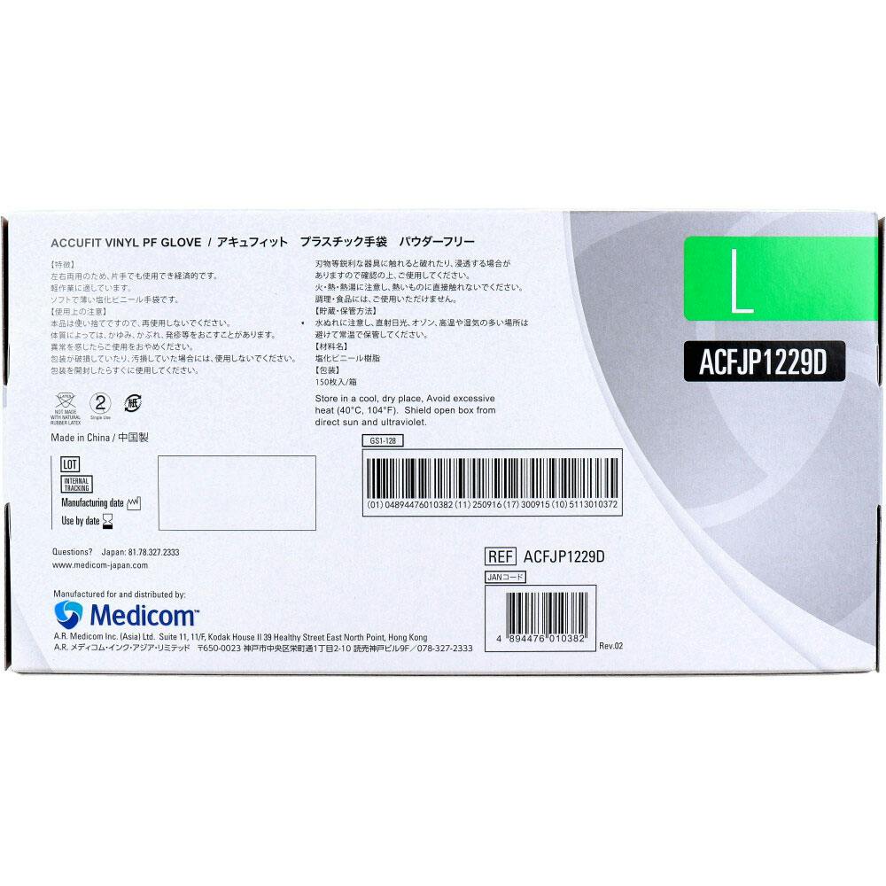 【業務用】アキュフィット プラスチック手袋 パウダーフリー クリアー L 150枚入 ×1点【送料込み】 #4894476010382