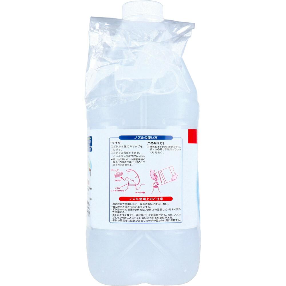 ★つけ方(1)ボトル本体のキャップをはずす。(2)カチッと音がするまで、ノズルをしっかり押し込む。※押し込む時、ボトル側面を強く握ると内容液が飛び出ることがあるので注意する。★つめかえ方・栓をあけそそぎ口を持たずに、ボトルの取っ手を持ってゆっくりそそぐ。