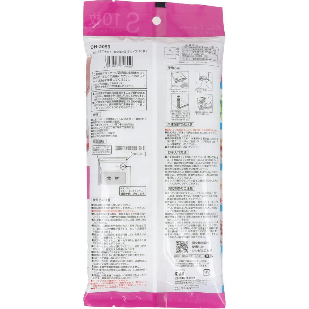• おいしさそのまま! 真空保存袋 Sサイズ 10枚入 DH-2059 ×1点【送料込み】 #4901601214550