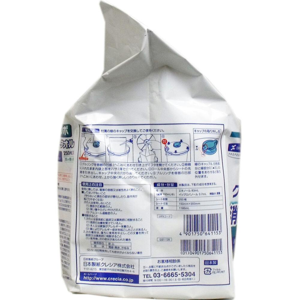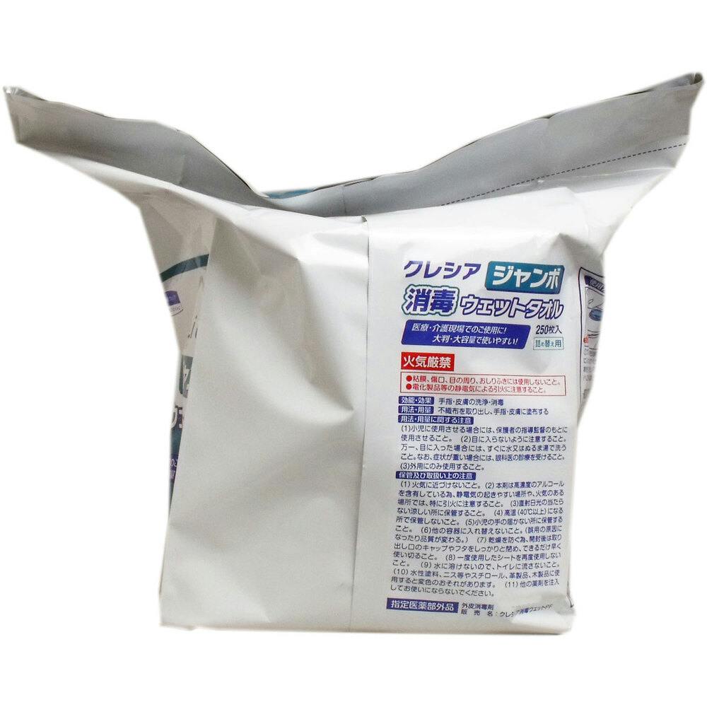クレシア ジャンボ消毒ウェットタオル 詰替用 250枚入 ×1点【送料込み】 #4901750641153