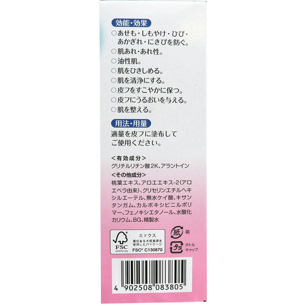 ★有効成分グリチルリチン酸2K、アラントイン★その他成分桃葉エキス、アロエエキス-2(アロエベラ由来)、グリセリンエチルヘキシルエーテル、無水ケイ酸、キサンタンガム、カルボキシビニルポリマー、フェノキシエタノール、水酸化カリウム、BG、精製水