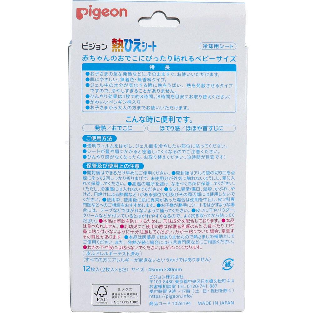 ピジョン 熱ひえシート (ベビー用冷却シート) 12枚入 ×1点【送料込み】 #4902508150934