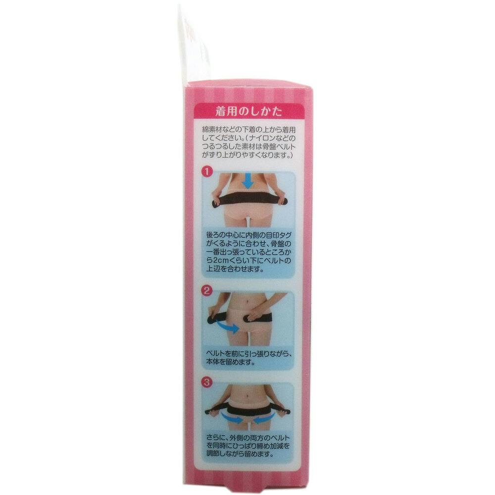※綿素材などの下着の上から着用してください。(ナイロンなどのつるつるした素材は骨盤ベルトがずり上がりやすくなります。)(1)後ろの中心に内側の目印タグがくるように合わせ、骨盤の一番出っ張っているところから2cmくらい下にベルトの上辺を合わせます。(2)ベルトを前に引っ張りながら、本体を留めます。(3)さらに、外側の両方のベルトを同時に引っ張り締め加減を調節しながら留めます。