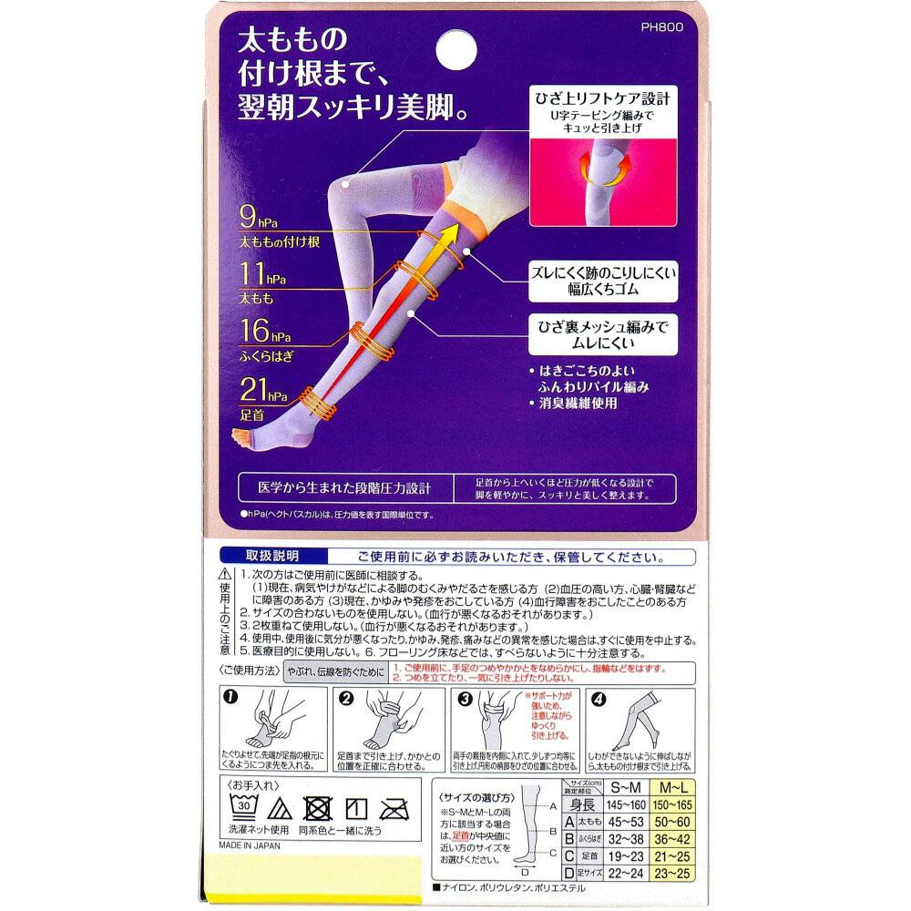 はいて寝るだけ、太ももまでしっかりスッキリ美脚!太ももの付け根まで、翌朝スッキリ美脚。●ひざ上リフトケア設計。U字テーピング編みでキュッと引き上げ。●ズレにくく跡のこりしにくい幅広くちゴム。●ひざ裏メッシュ編みでムレにくい。●はきごこちのよいふんわりパイル編み。●消臭繊維使用。●医学から生まれた段階圧力設計。足首から上へいくほど圧力が低くなる設計で脚を軽やかに、スッキリと美しく整えます。●M-Lサイズ。↓↓スリムウォークシリーズ一覧はこちら↓↓