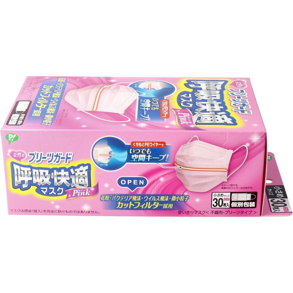 プリーツガード 呼吸快適マスク 個別包装 小さめサイズ ピンク 30枚入 ×1点【送料込み】 #4902522677974