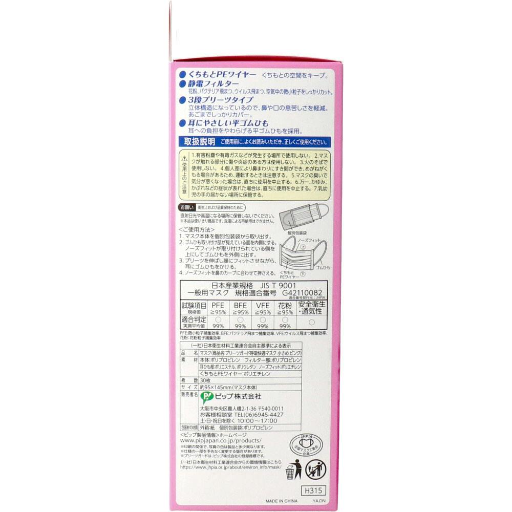 • プリーツガード 呼吸快適マスク 個別包装 小さめサイズ ピンク 30枚入 ×1点【送料込み】 #4902522677974