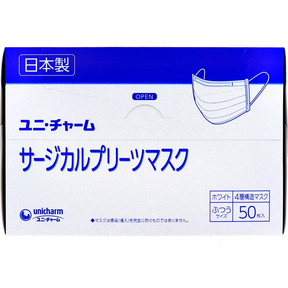 ユニ・チャーム サージカルプリーツマスク 4層構造 ふつうサイズ ホワイト 50枚入 ×1点【送料込み】 #4903111575411