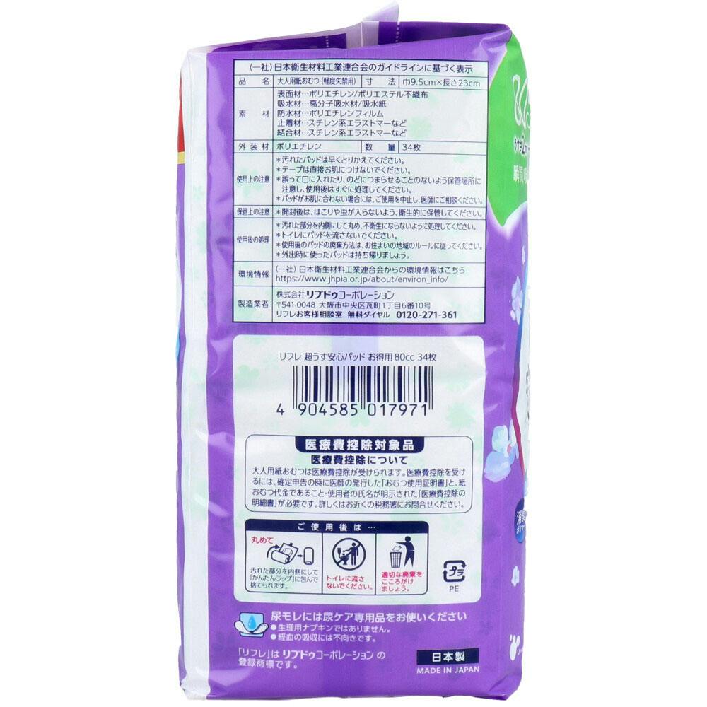 リフレ 超うす安心パッド 安心の中量用 お買得パック 34枚入 ×1点【送料込み】 #4904585017971